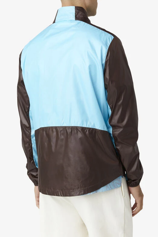 This windbreaker features a retro-inspired outdoors design with a bold two-color block, full-zip front and logo patches on the sleeve in a 100% nylon construction.